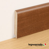 Battiscopa in multistrato rivestito in legno di Tanganica, ideale per completare pareti e pavimenti con calore, eleganza e durata.